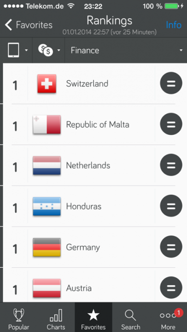 Platz 1 (Kategorie Finanzen) in 22 Länder.