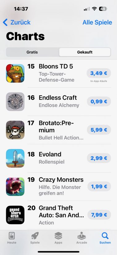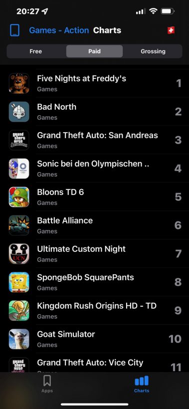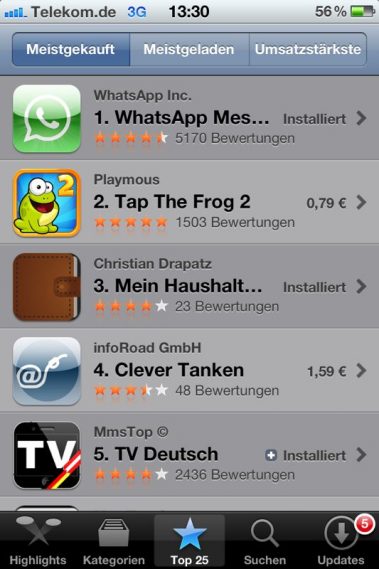 Platz 2 (iPhone) und Platz 3 (iPad) in Europa (Apps-Charts).