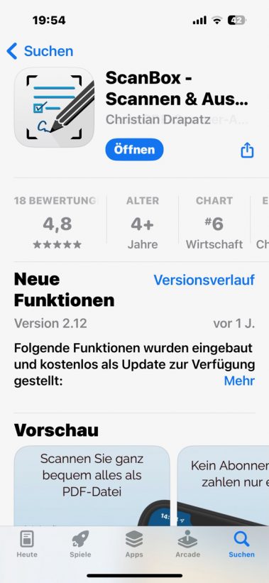 Beste PDF-Scanner-App ohne Abo. Die App hilft Ihnen im Alltag, wichtige Dokumente zu scannen und sie vorm Senden/Speichern zu bearbeiten. Die App besitzt alle neuen Funktionen (Pencil-Unterstützung, Darkmode, Widgets, Quick Actions, Face-/Touch-ID, …) und verzichtet auf unnötigen Ballast.